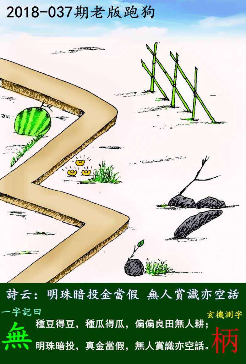 037期:老版跑狗一字記之曰:【無】玄機測字《柄》