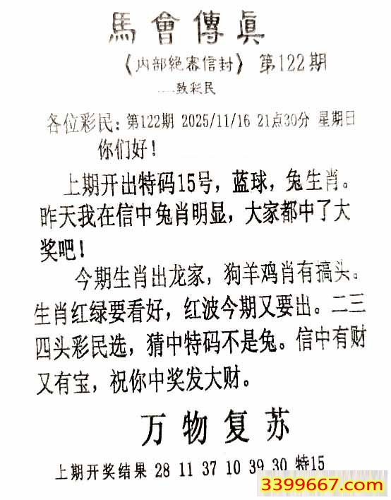 122期:首发推荐:≮馬會傳眞≯→(香港正版)