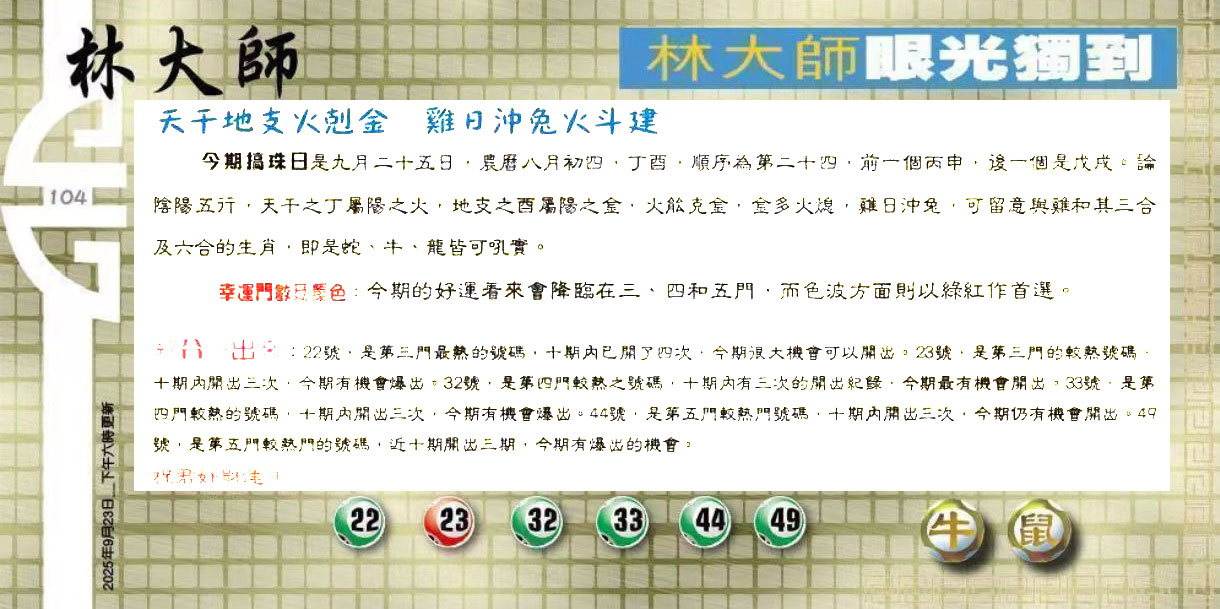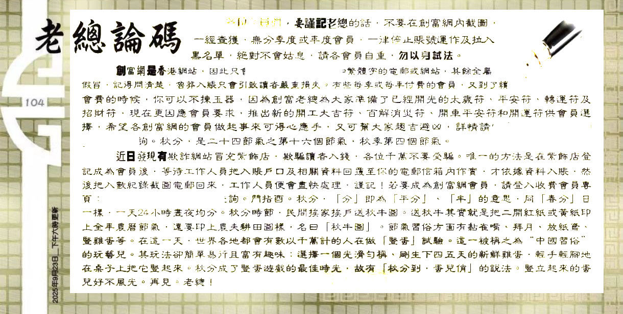 104期:六合皇金句/老总论码/萧公子/林大师/五行夺码/老总信箱截