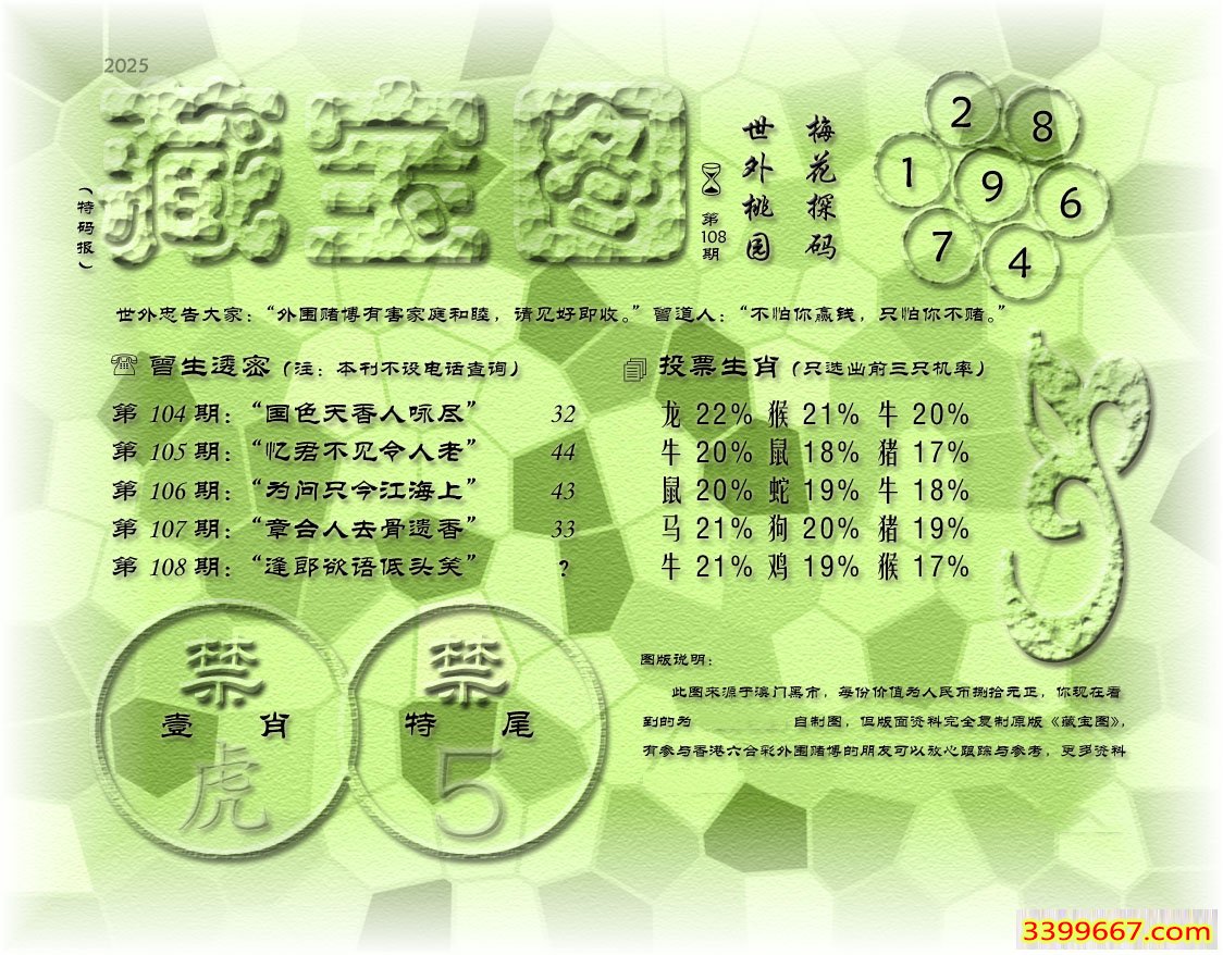 108期藏寶圖 新:云残香瘦春犹可 老:逢郎欲语低头笑 禁:虎 禁:5尾