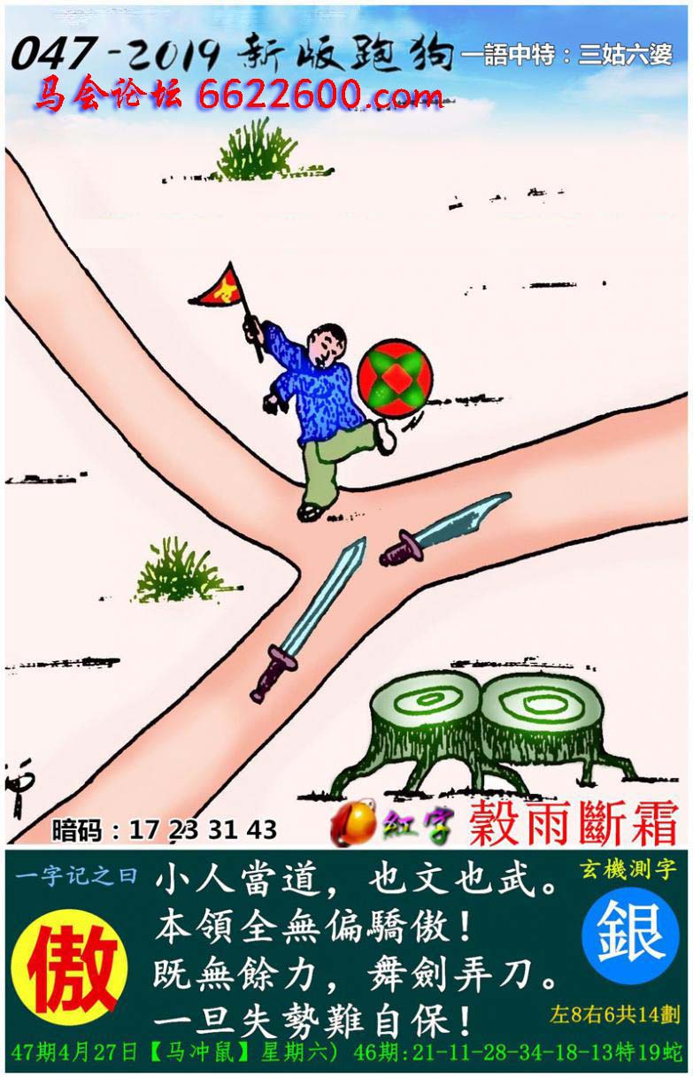 047期:新版跑狗一字記之曰【傲】玄機測字:《銀》