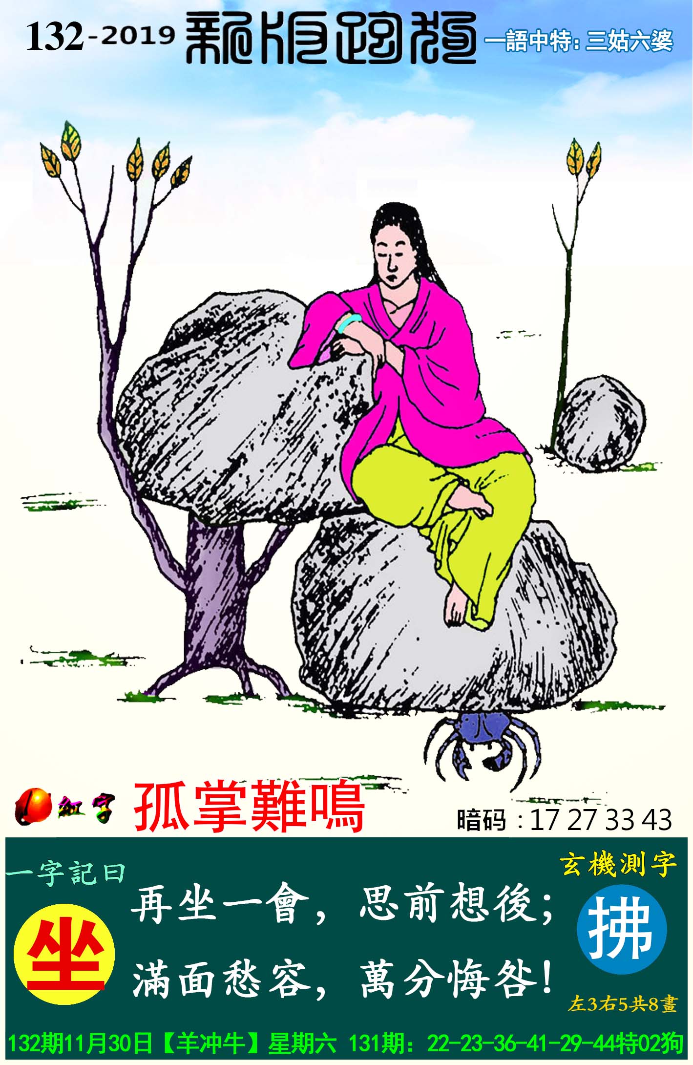 132期新版跑狗一字記之曰:【坐】