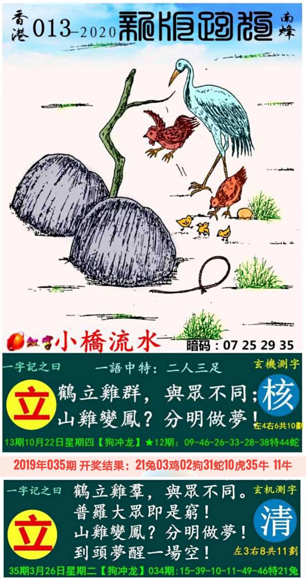 013期:新版跑狗一字記之曰【立】玄機測字:《核》