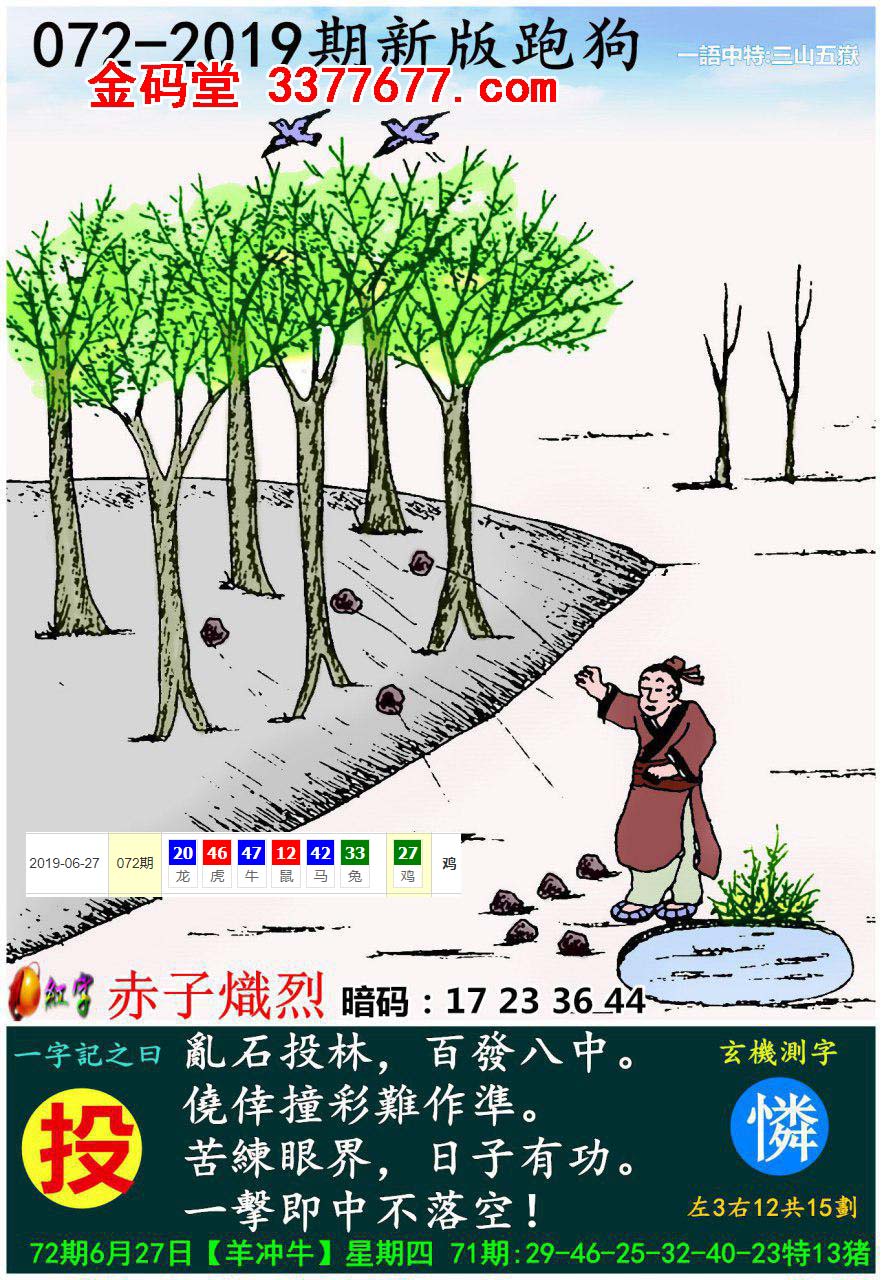 主题 : 025期:新版跑狗一字記之曰【投】玄機測字:《此》