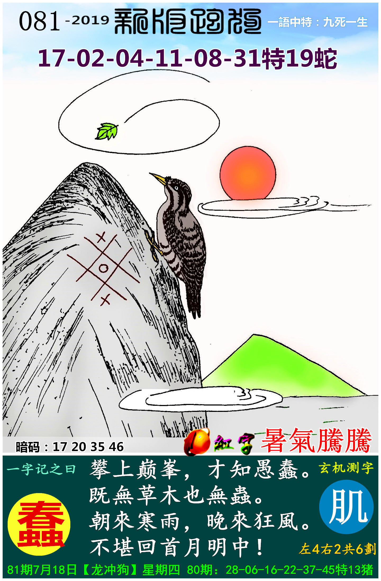 主题 : 045期:新版跑狗一字記之曰【蠢】玄機測字:《煙》