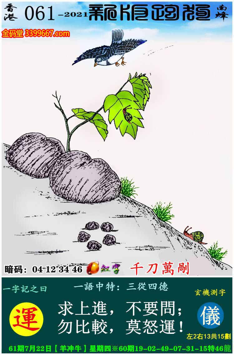 061期新版跑狗一字記之曰:【運】