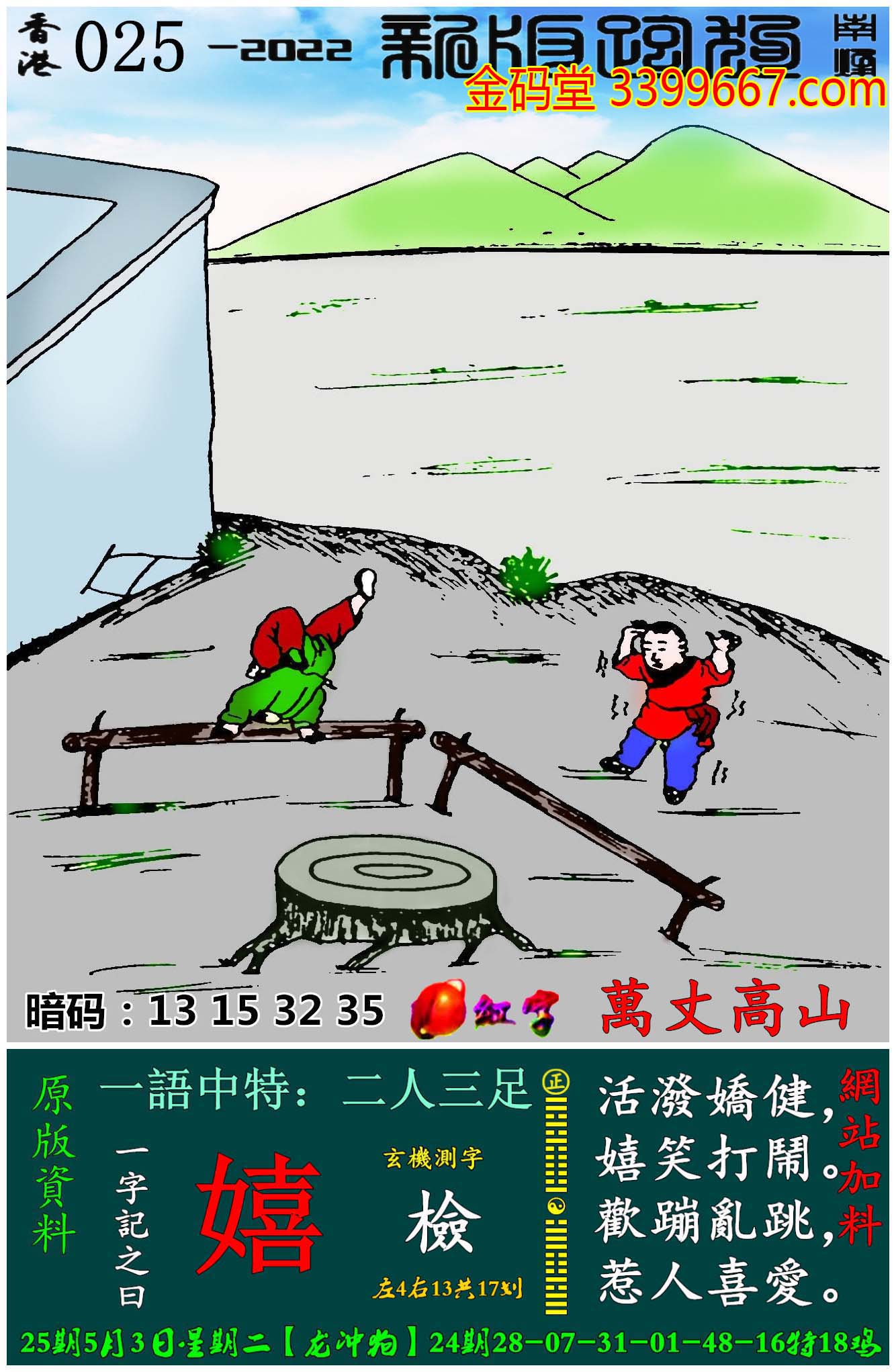 025期:新版跑狗一字記之曰【嬉】玄機測字:《檢》