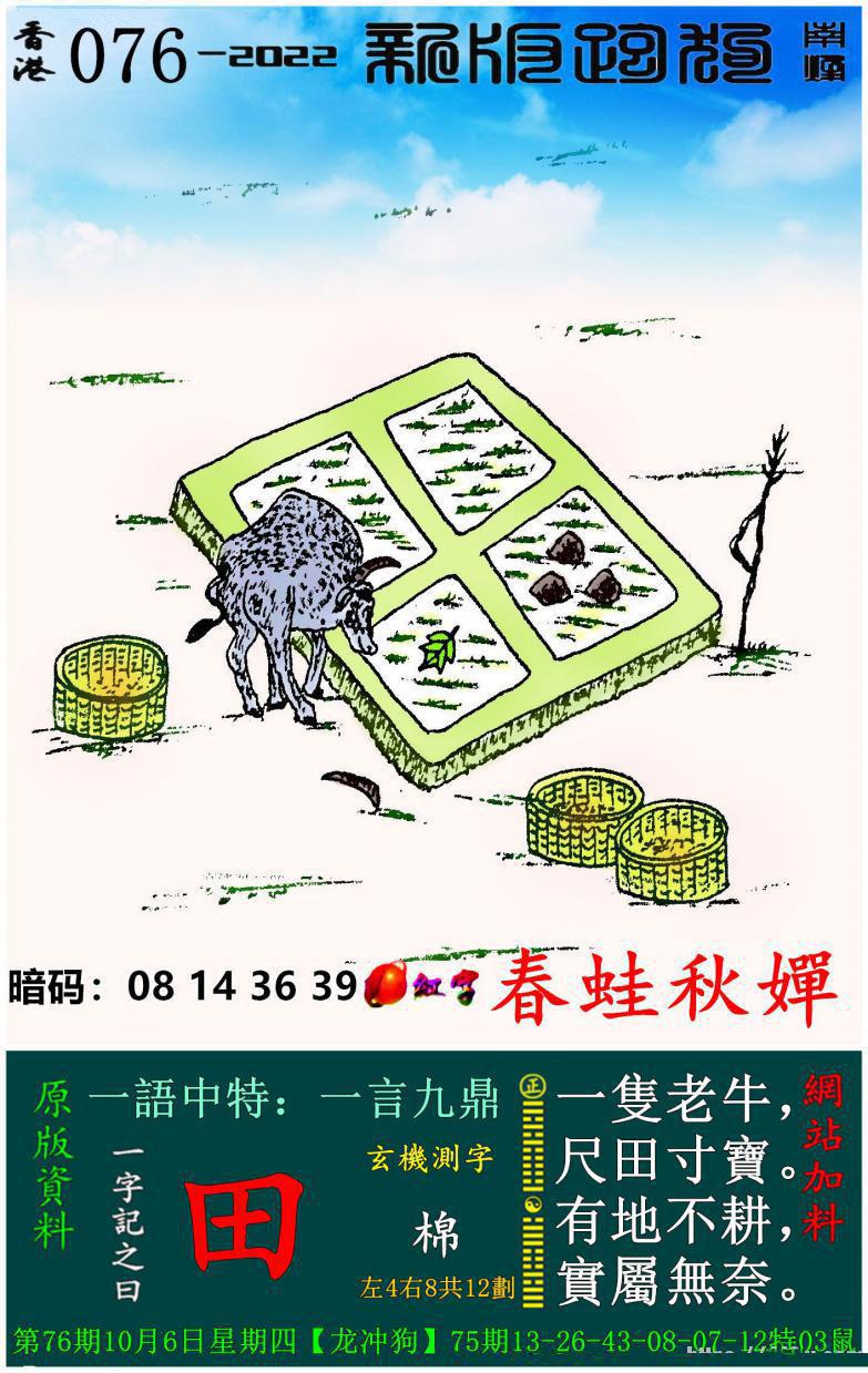076期新版跑狗一字記之曰:【田】