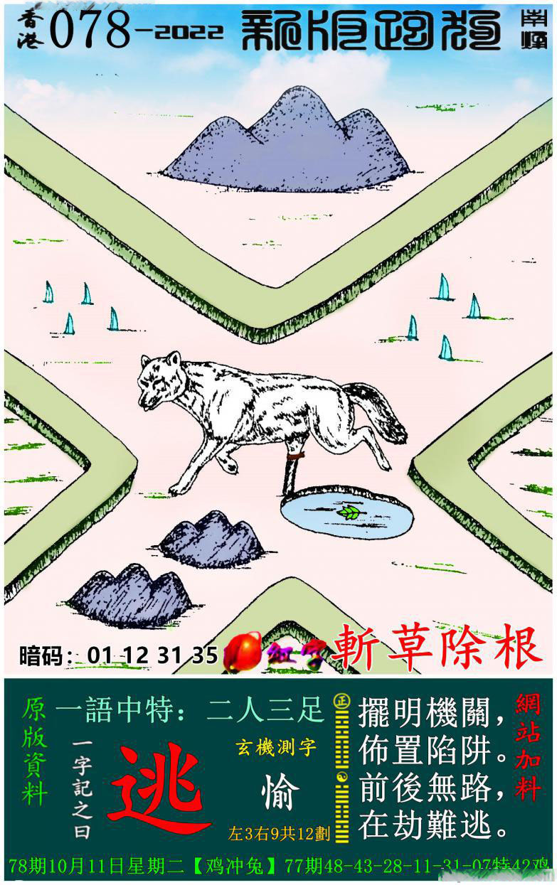 主题 : 078期:新版跑狗一字記之曰【逃】玄機測字:《愉》