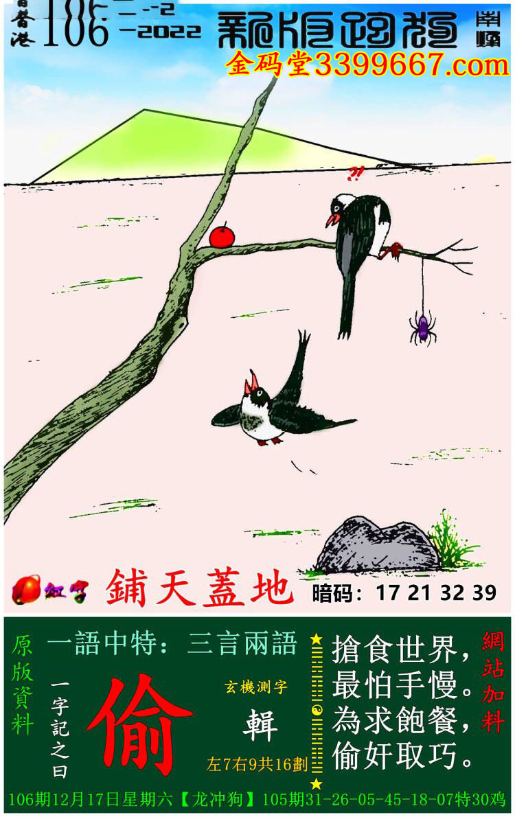 主题 : 106期:新版跑狗一字記之曰【偷】玄機測字:《輯》