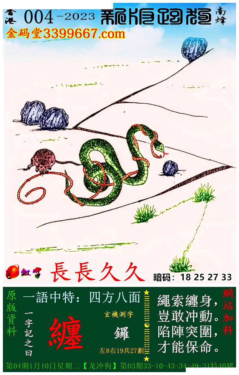 004期新版跑狗一字記之曰:【纏】