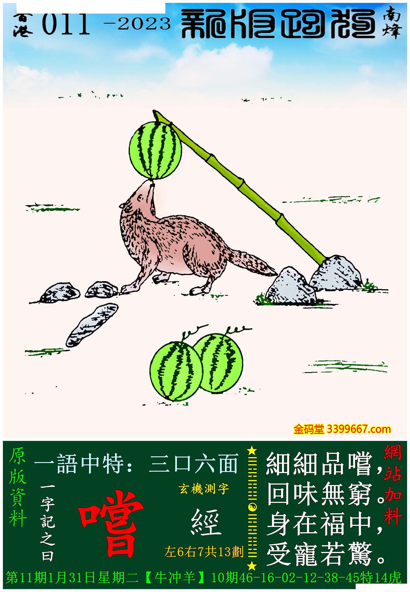 011期:新版跑狗一字記之曰【嚐】玄機測字:《經》