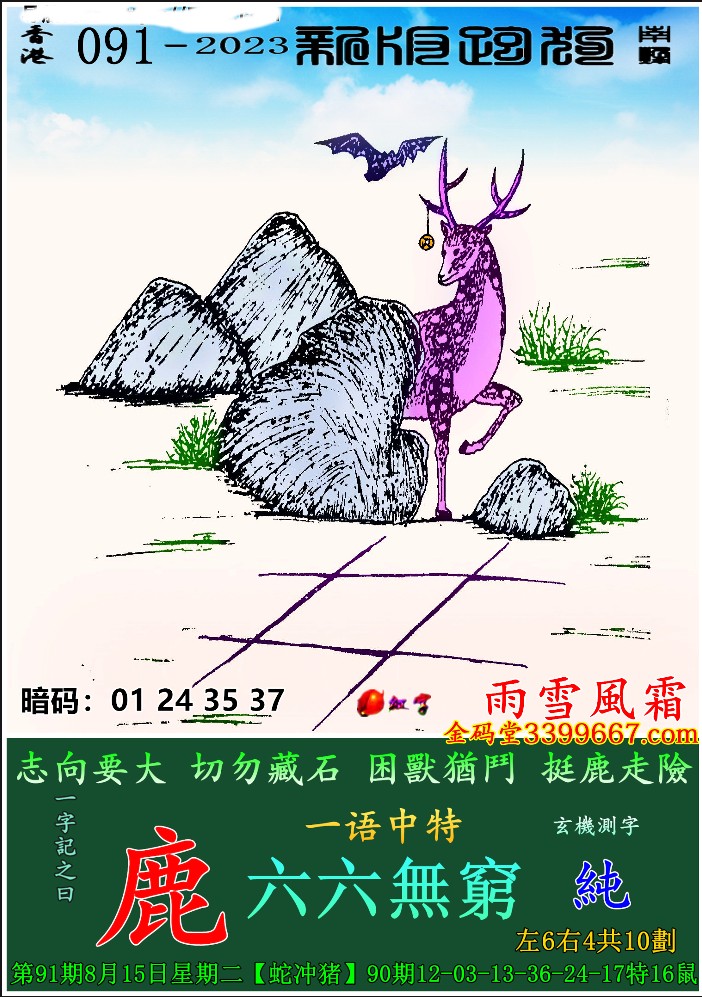 091期:新版跑狗一字記之曰【鹿】 玄機測字:《純》