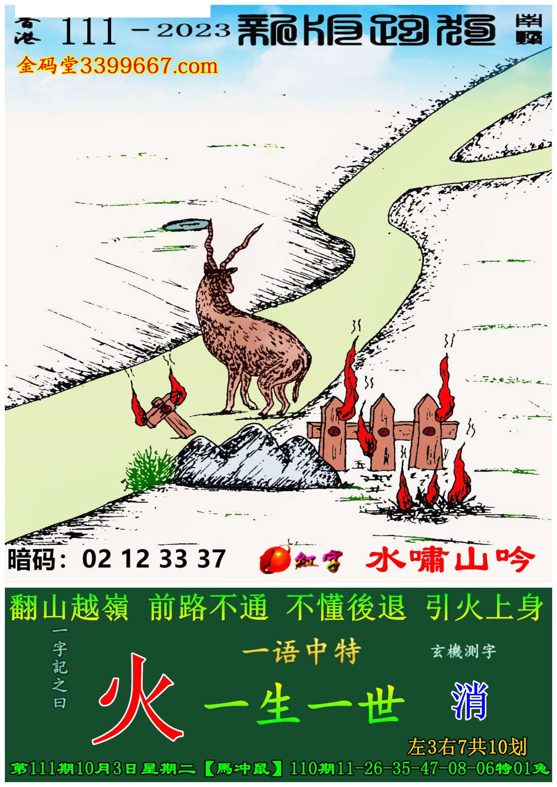 111期:新版跑狗一字記之曰【火】玄機測字:《消》