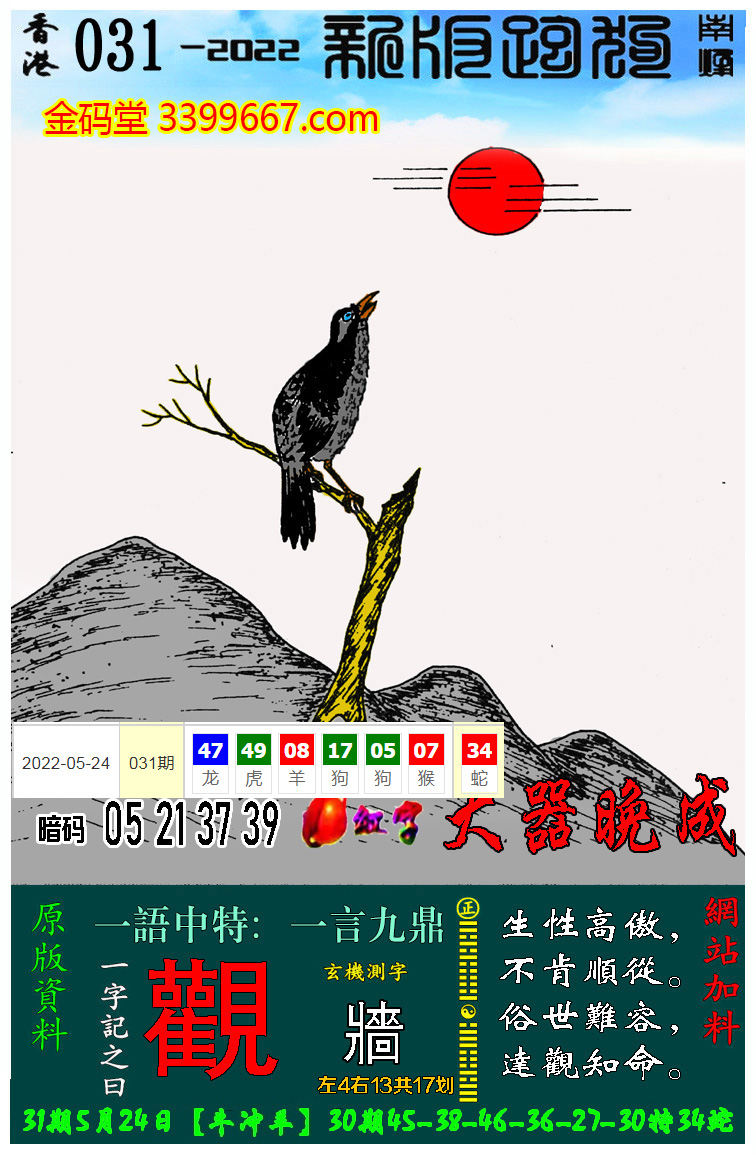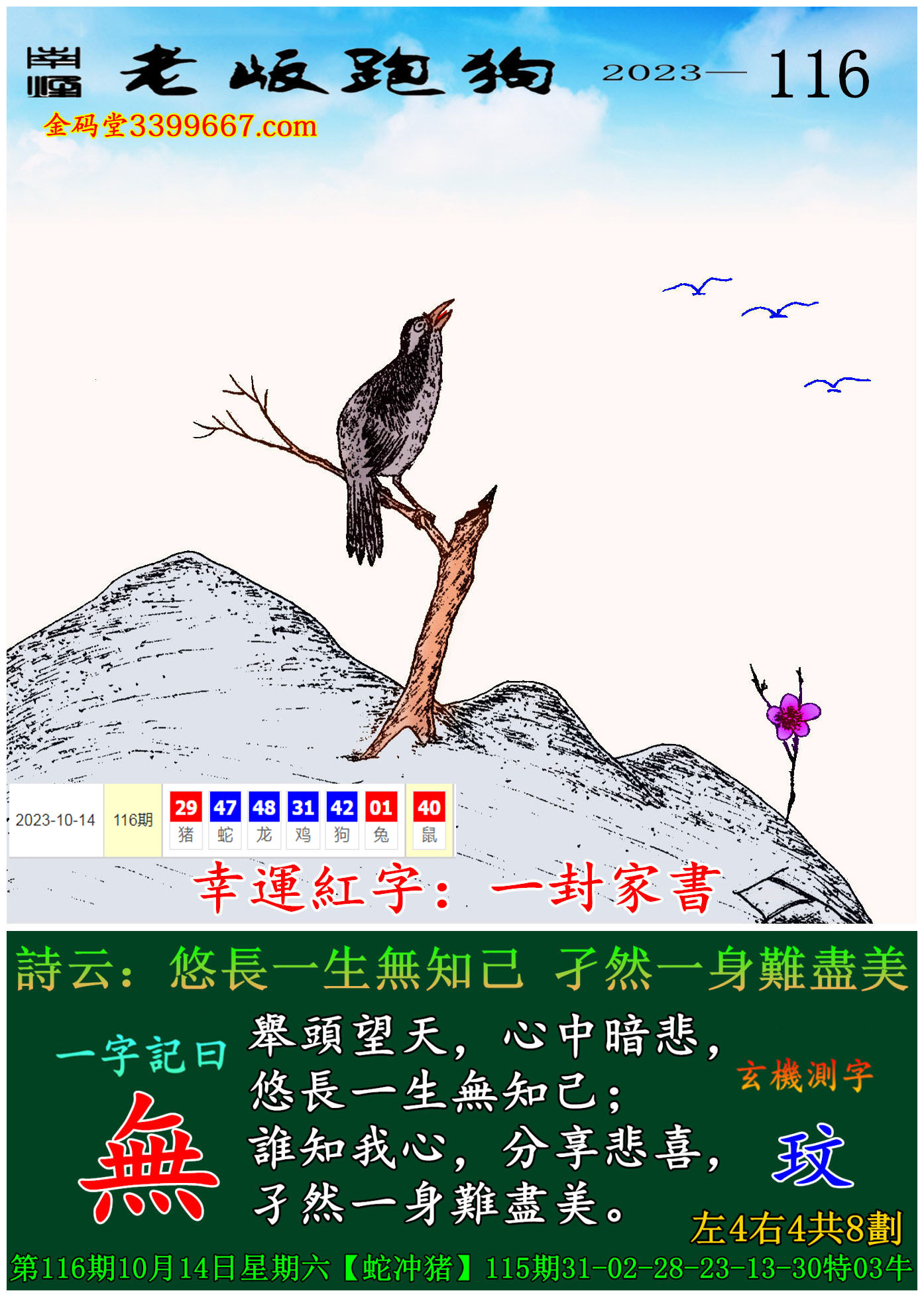 084期:新版跑狗一字記之曰【月】 玄機測字:【紛】