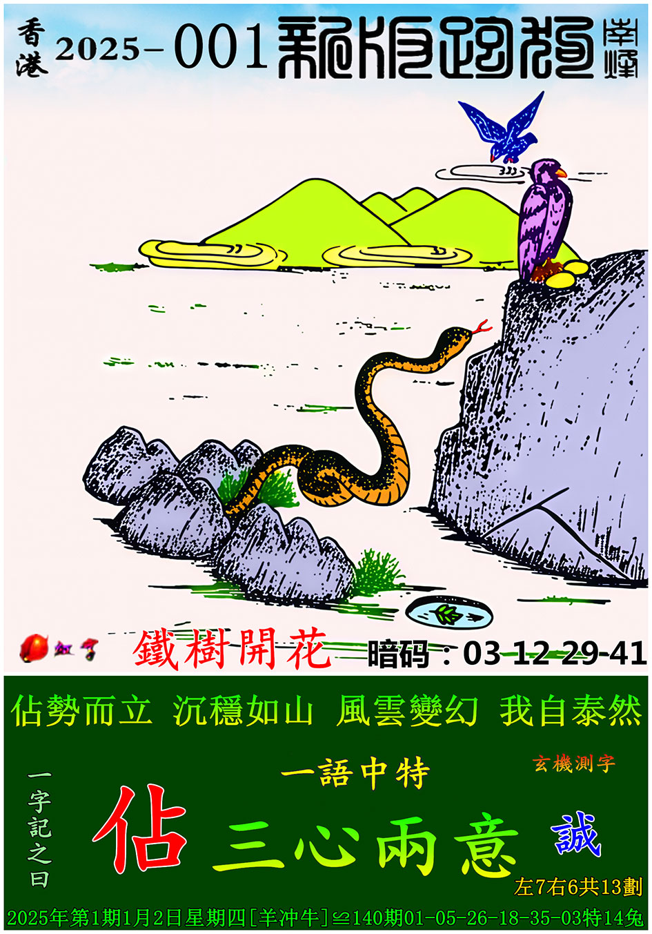 001期:新版跑狗一字記之曰【佔】 玄機測字:【誠】