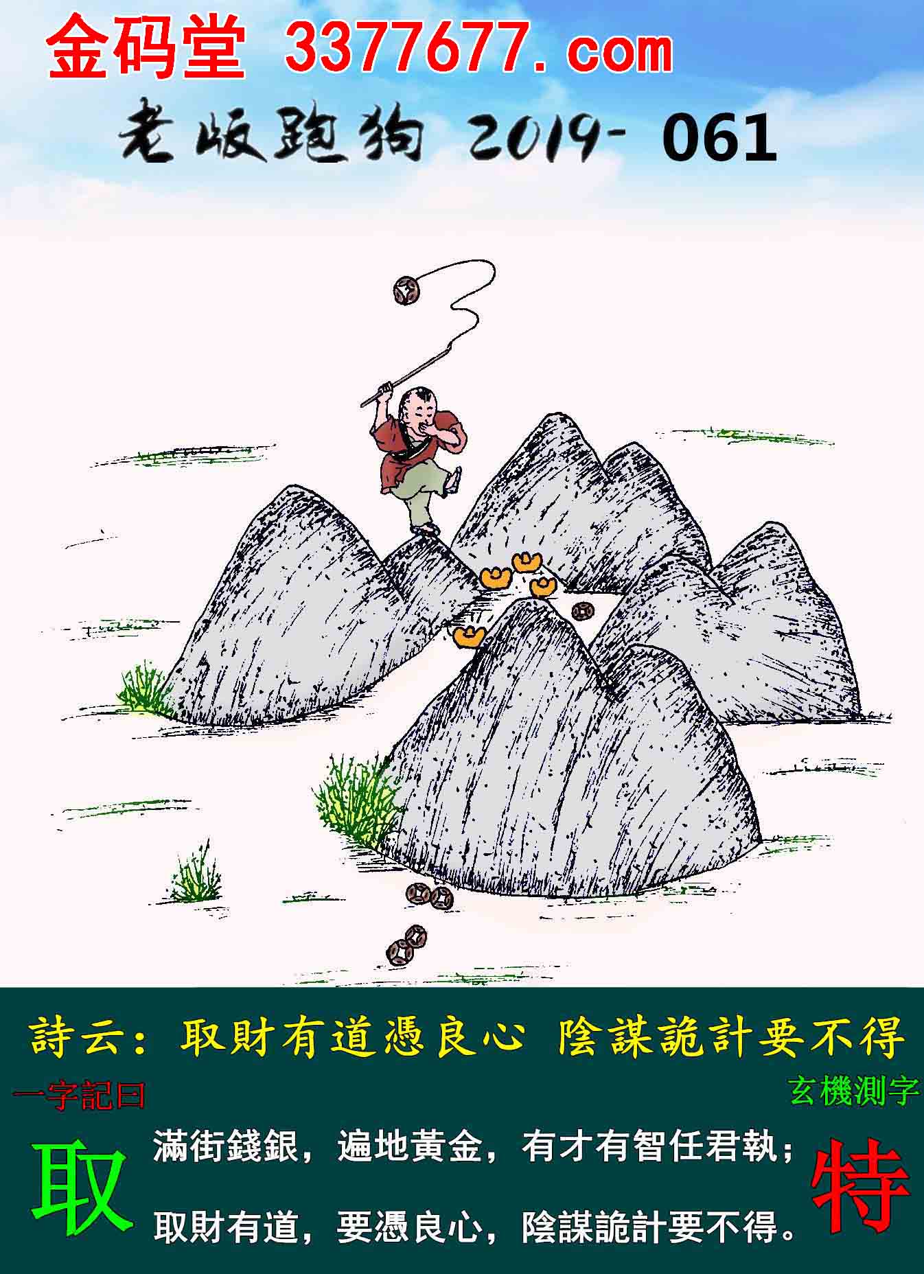 061期:老版跑狗一字記之曰【取】玄機測字《特》
