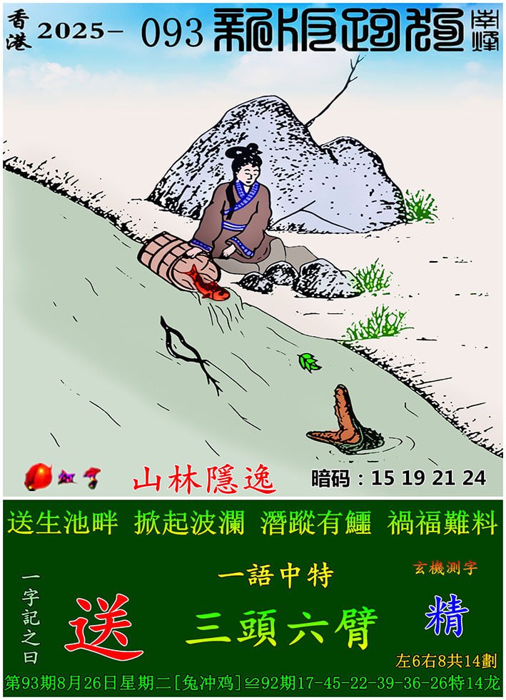 093期:新版跑狗一字記之曰【送】 玄機測字:【精】