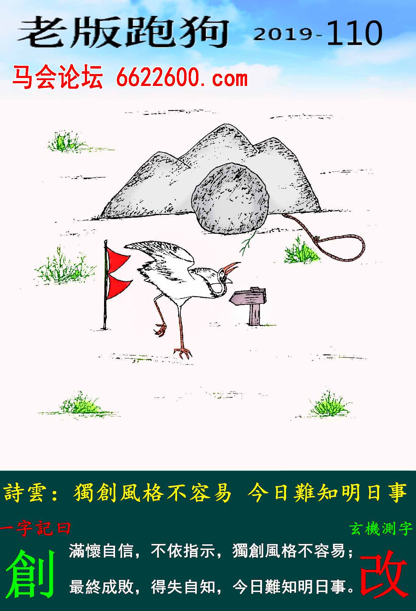 主题 : 110期老版跑狗一字記之曰:【創】玄機測字:《改》