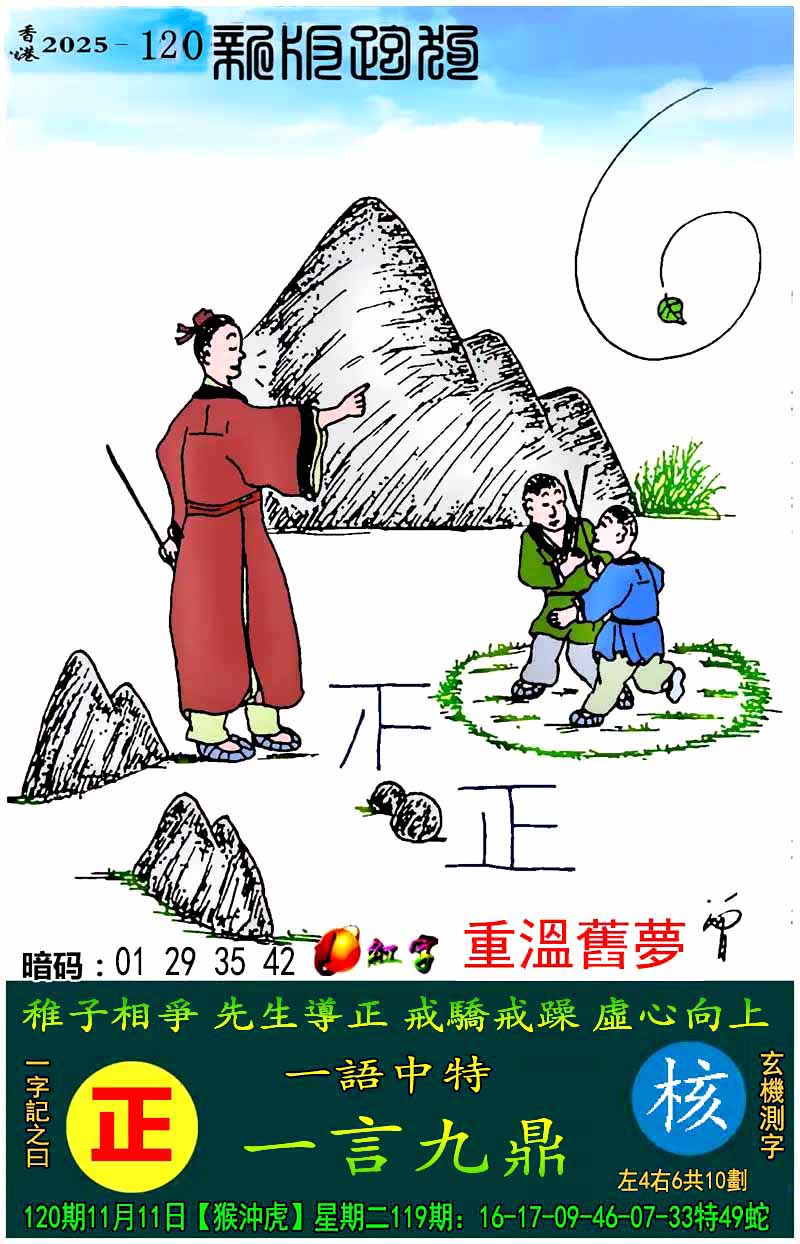 主题 : 120期:新版跑狗一字記之曰【正】 玄機測字:【核】