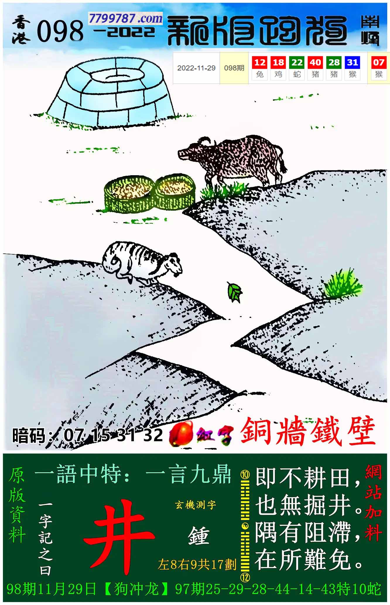 131期新版跑狗一字記之曰:【井】