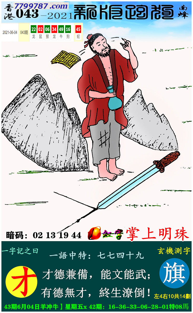 017期:新版跑狗一字記之曰【拋】 玄機測字:【縝】