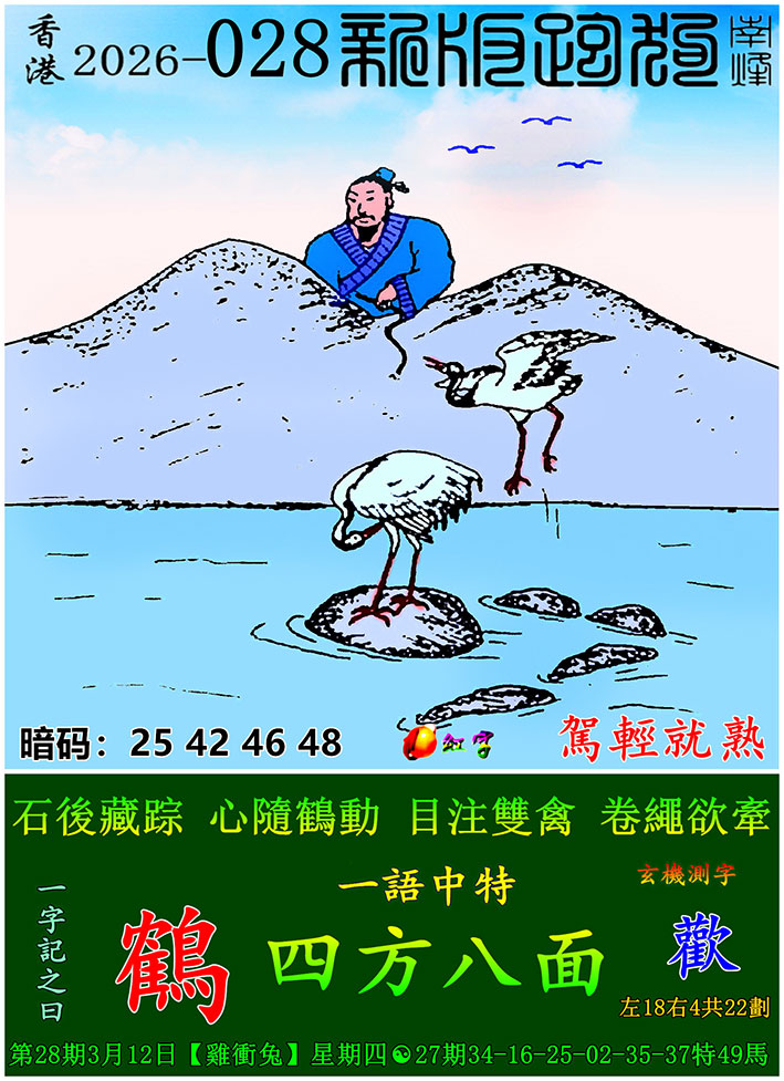 主题 : 028期新版跑狗一字記之曰:【雙】玄機測字:《歡》