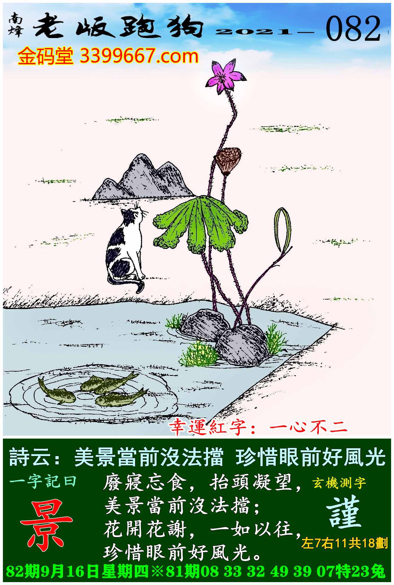 082期老版跑狗一字記之曰:【景】玄機測字:《謹》
