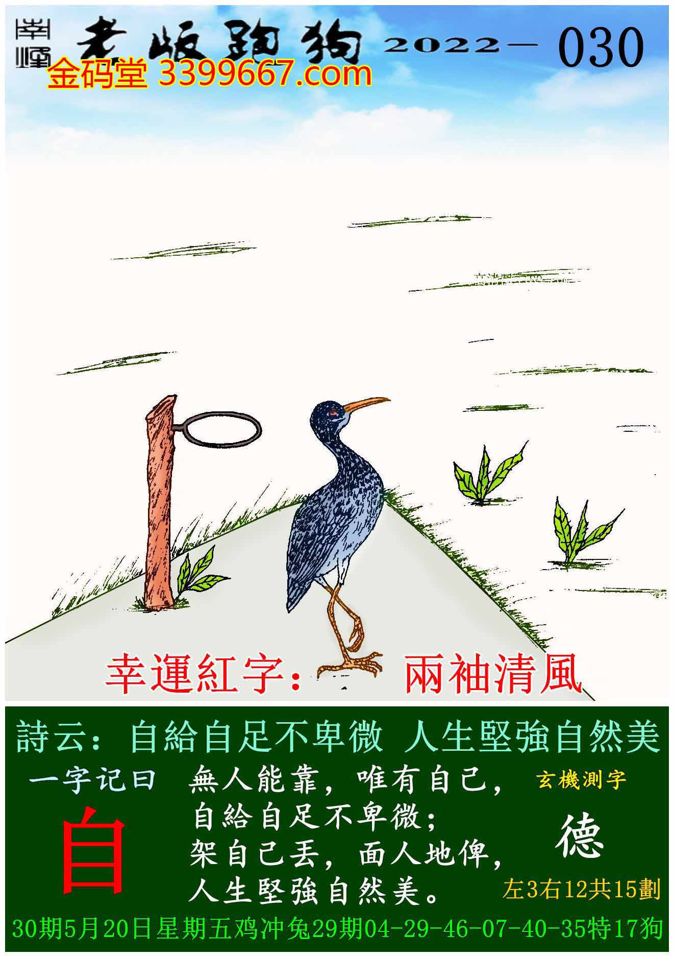 030期老版跑狗一字記之曰:【自】玄機測字:《德》