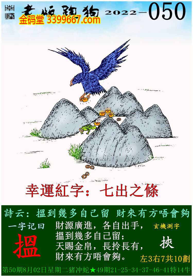 050期老版跑狗一字記之曰:【搵】玄機測字:《挾》