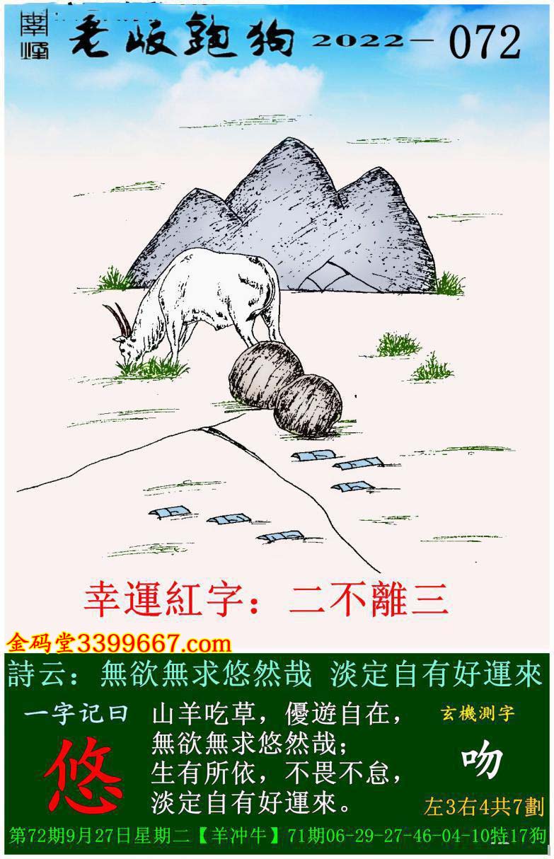 072期老版跑狗一字記之曰:【悠】玄機測字:《吻》