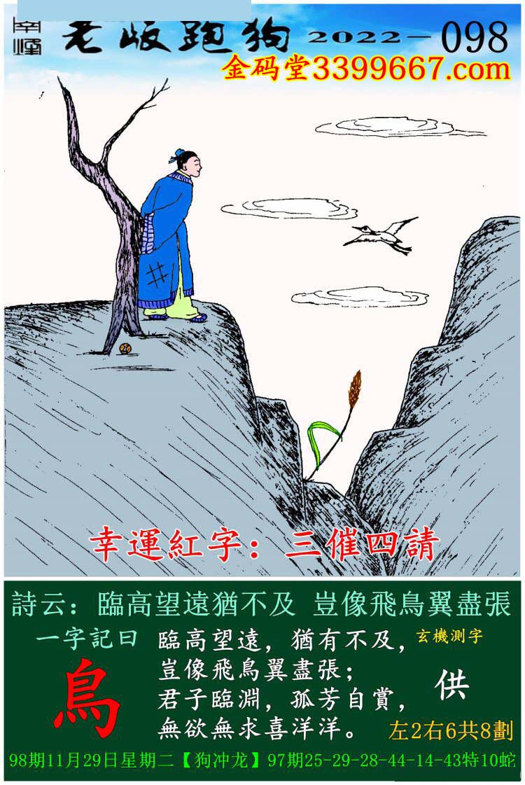 主题 : 098期老版跑狗一字記之曰:【鳥】玄機測字:《供》