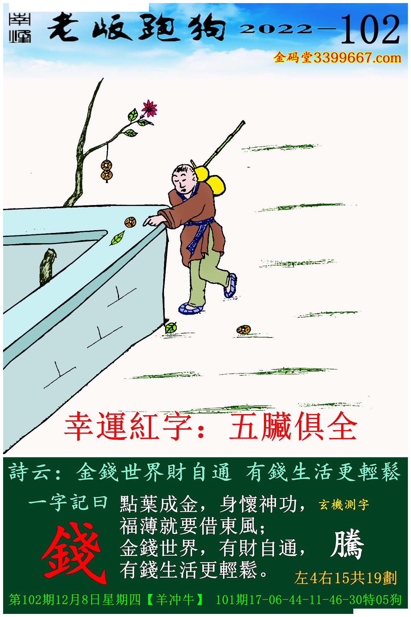 102期老版跑狗一字記之曰:【錢】玄機測字:《騰》