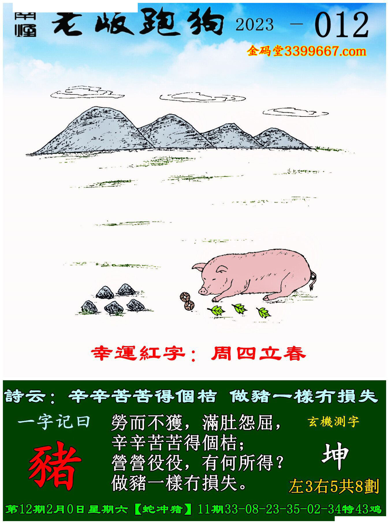 012期老版跑狗一字記之曰:【豬】