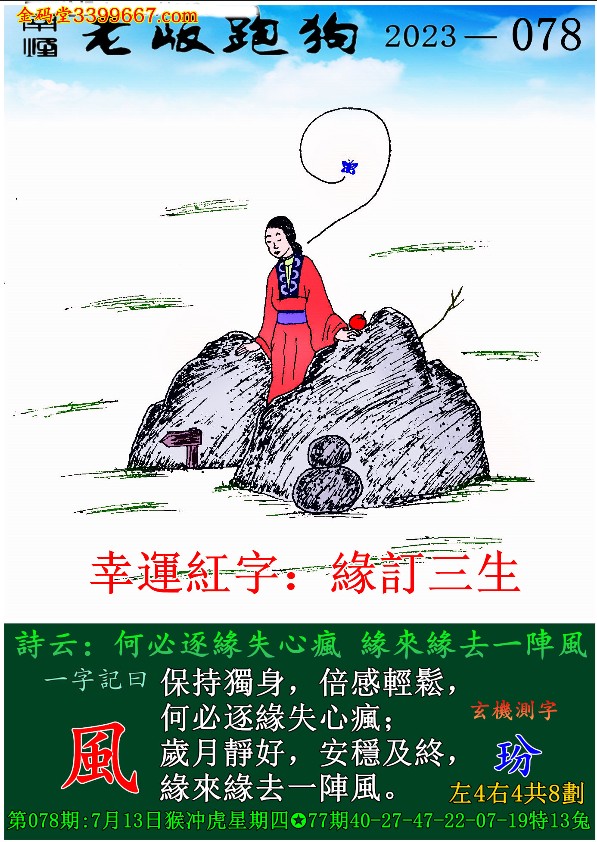 078期老版跑狗一字記之曰:【風】 玄機測字:《玢》