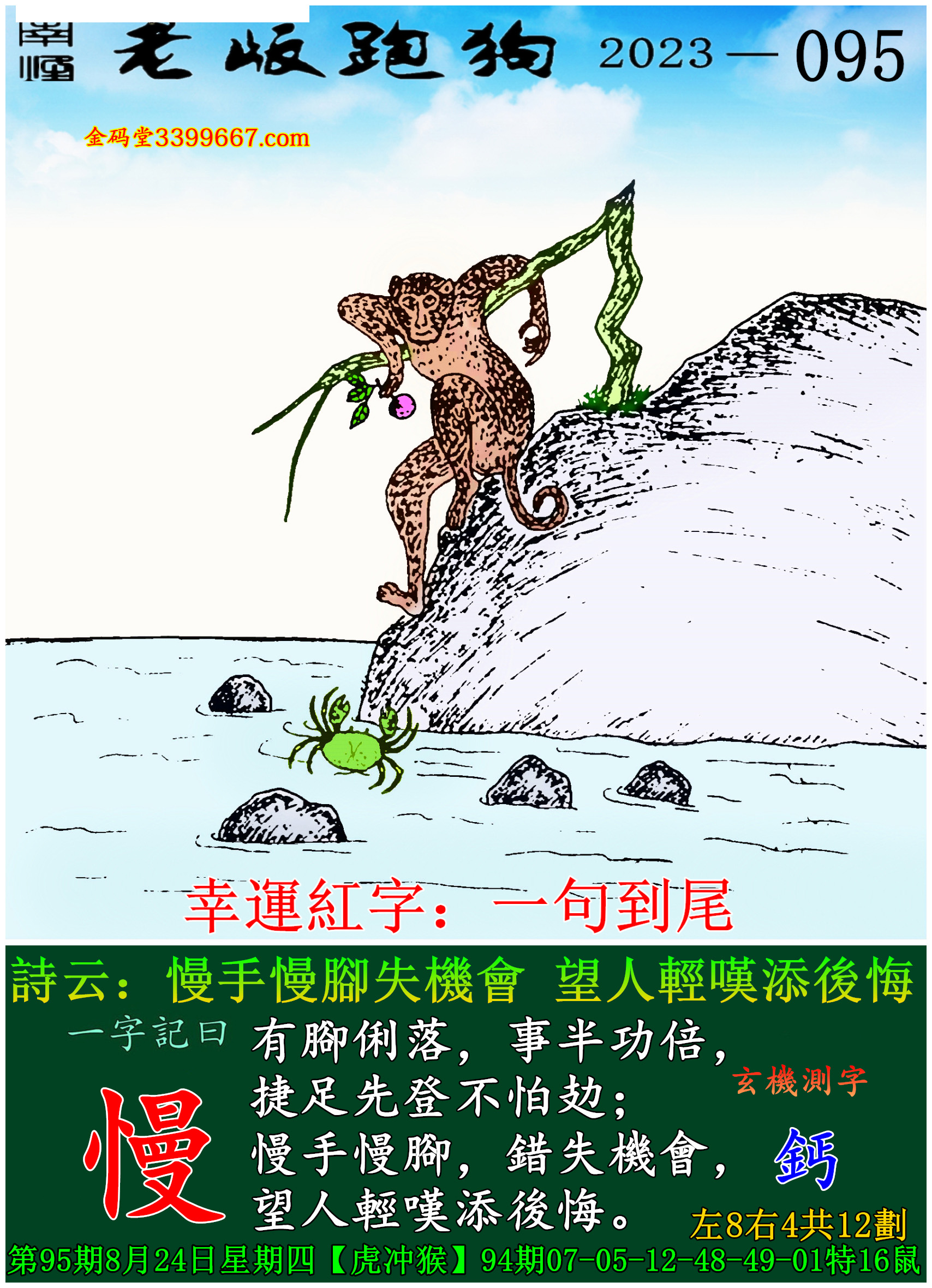 095期老版跑狗一字記之曰:【慢】