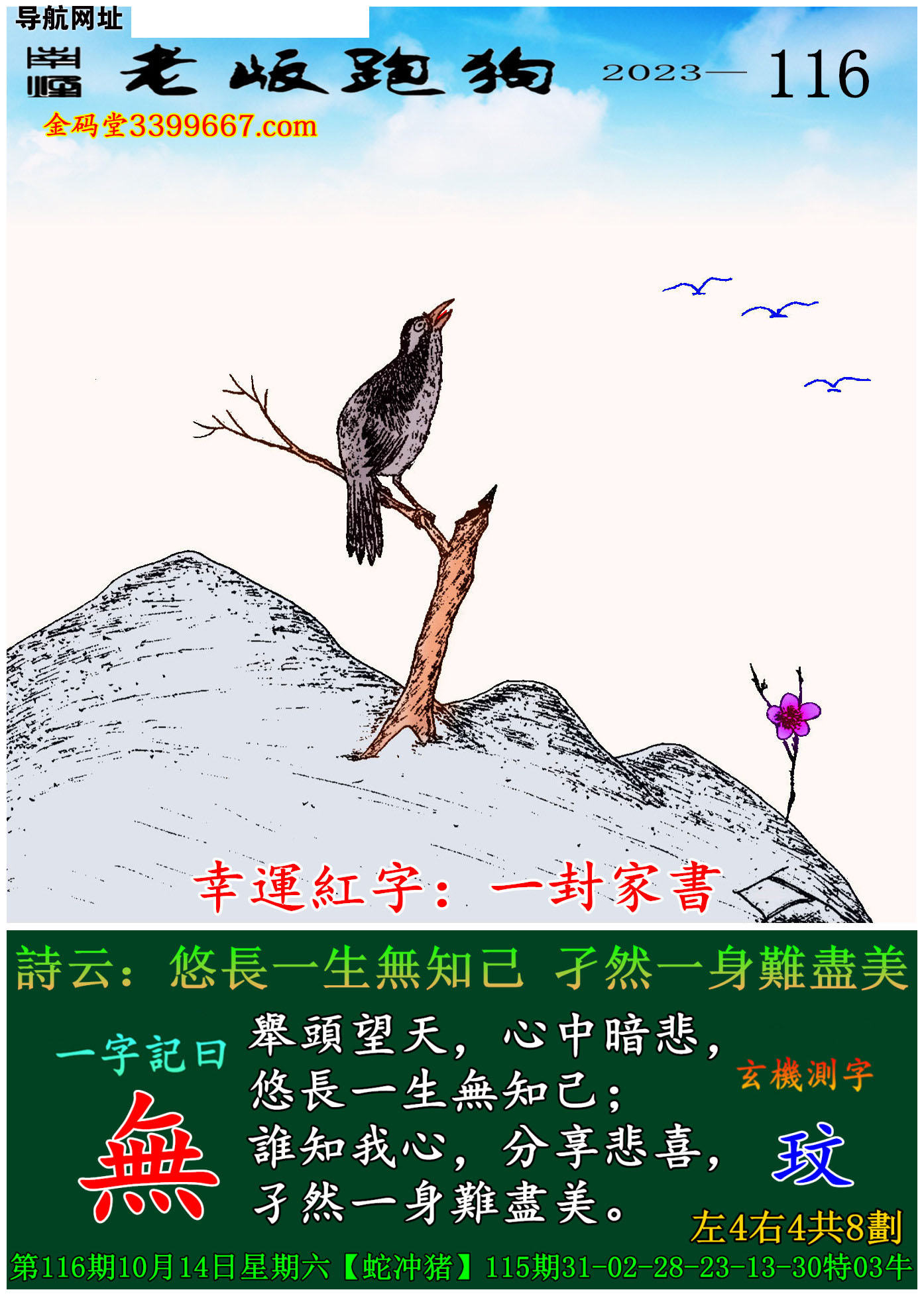 116期老版跑狗一字記之曰:【無】