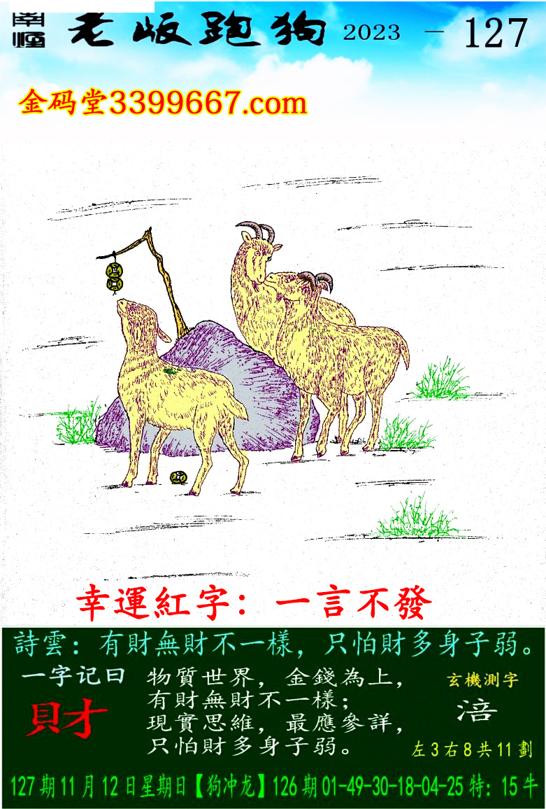 127期老版跑狗一字記之曰:【財】