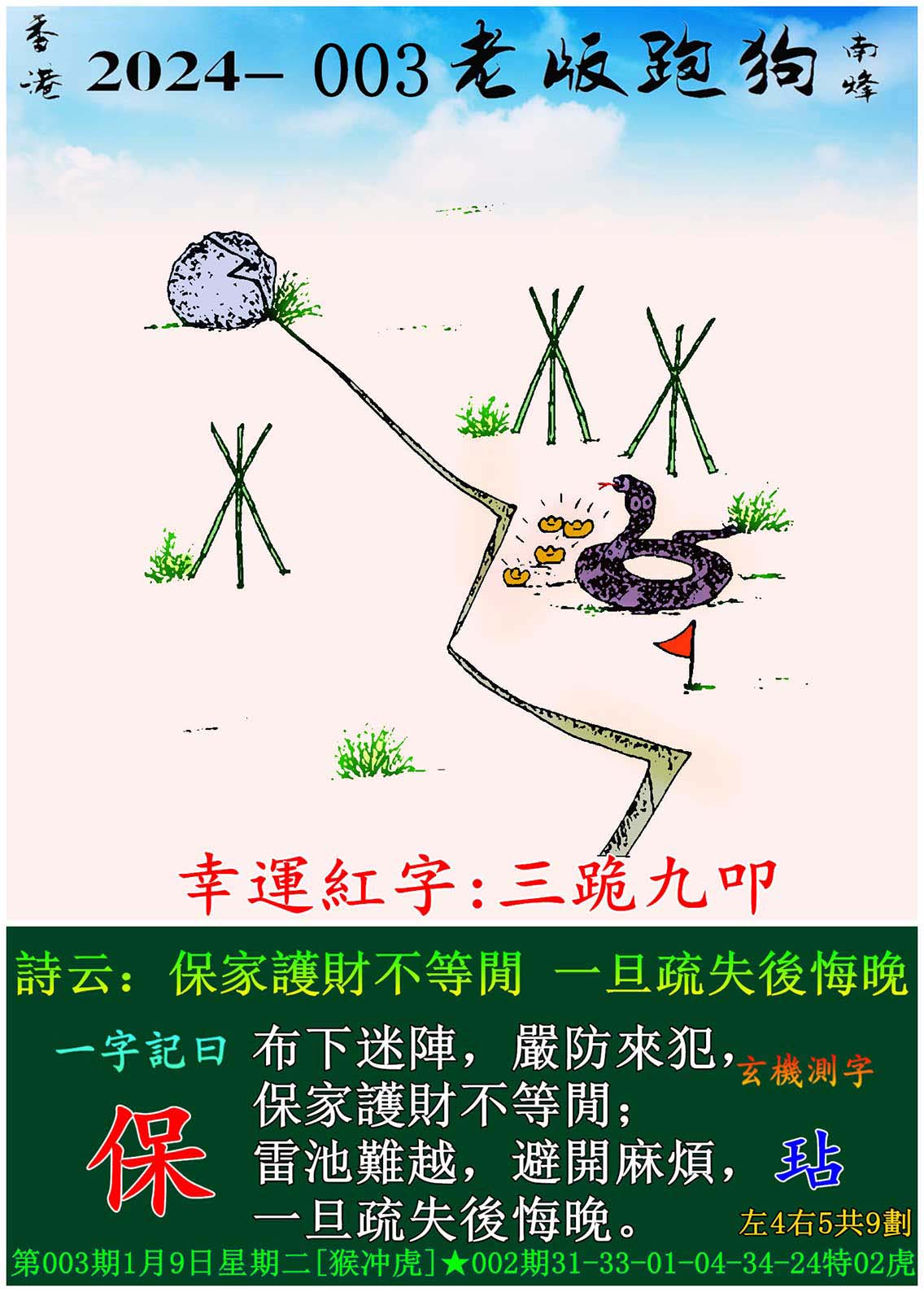 主题 : 003期老版跑狗一字記之曰:【保】 玄機測字:《玷》