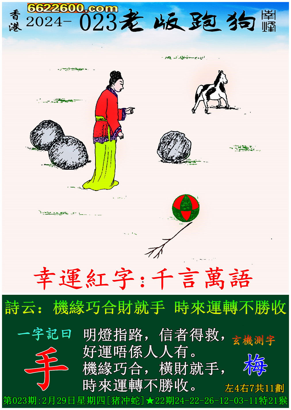 023期老版跑狗一字記之曰:【手】