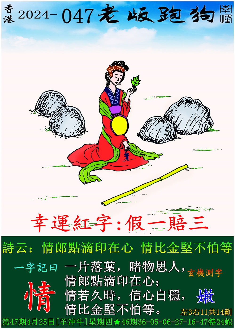 047期老版跑狗一字記之曰:【情】