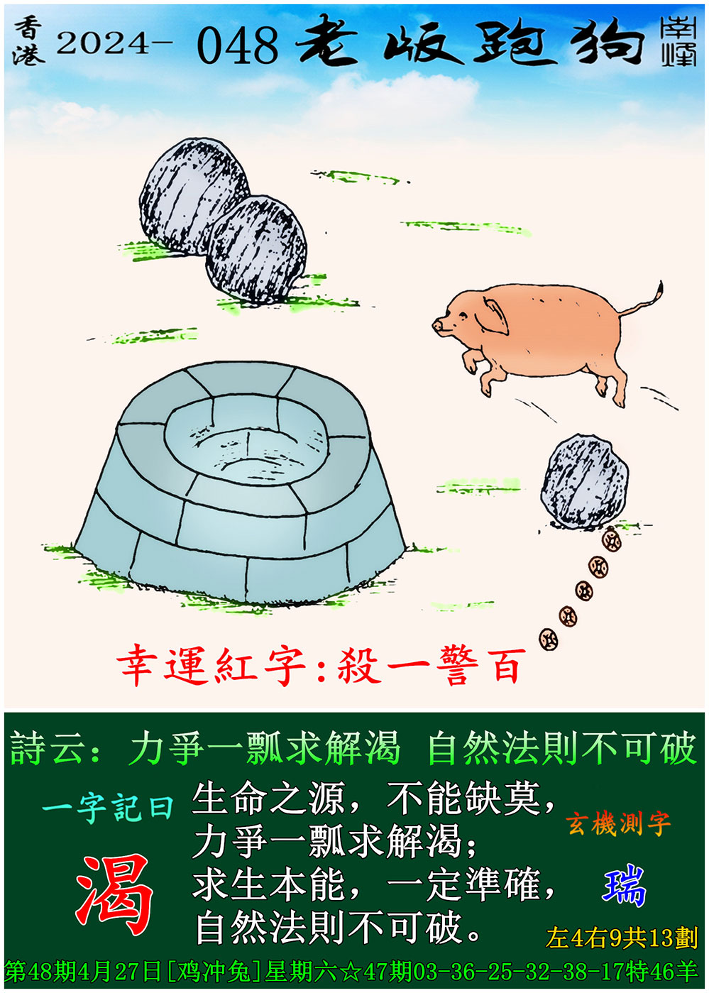 048期老版跑狗一字記之曰:【渴】 玄機測字:《瑞》
