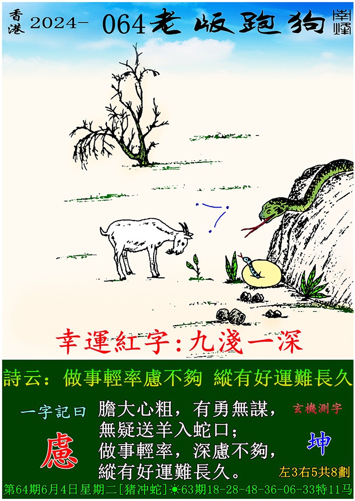 主题 : 064期老版跑狗一字記之曰:【慮】 玄機測字:《坤》
