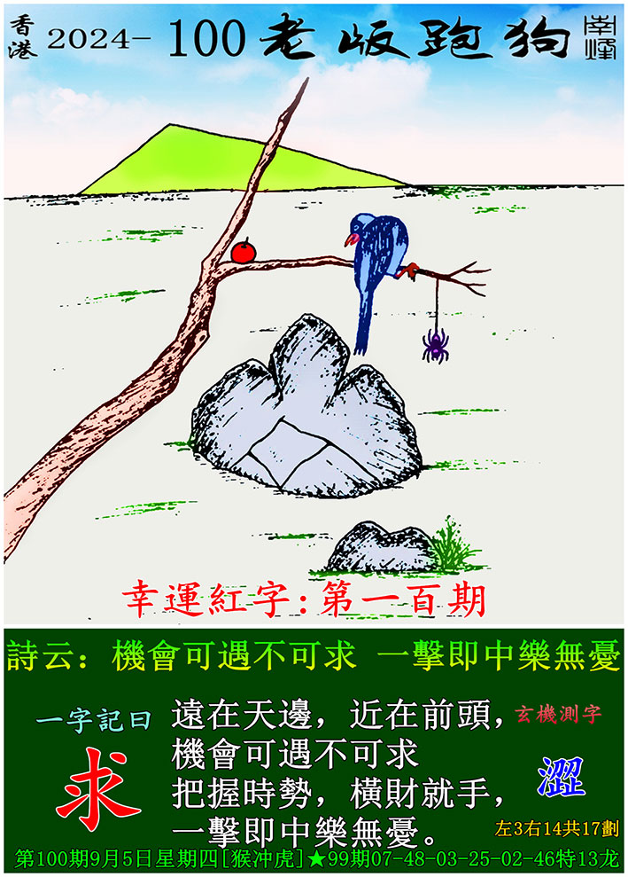 100期老版跑狗一字記之曰:【求】