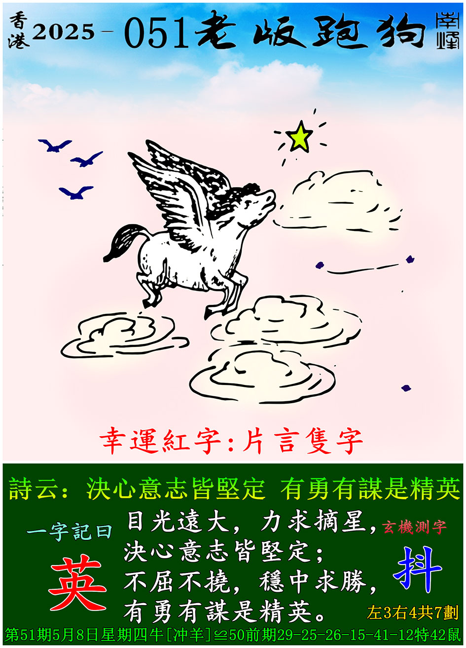 051期老版跑狗一字記之曰:【英】 玄機測字:《抖》