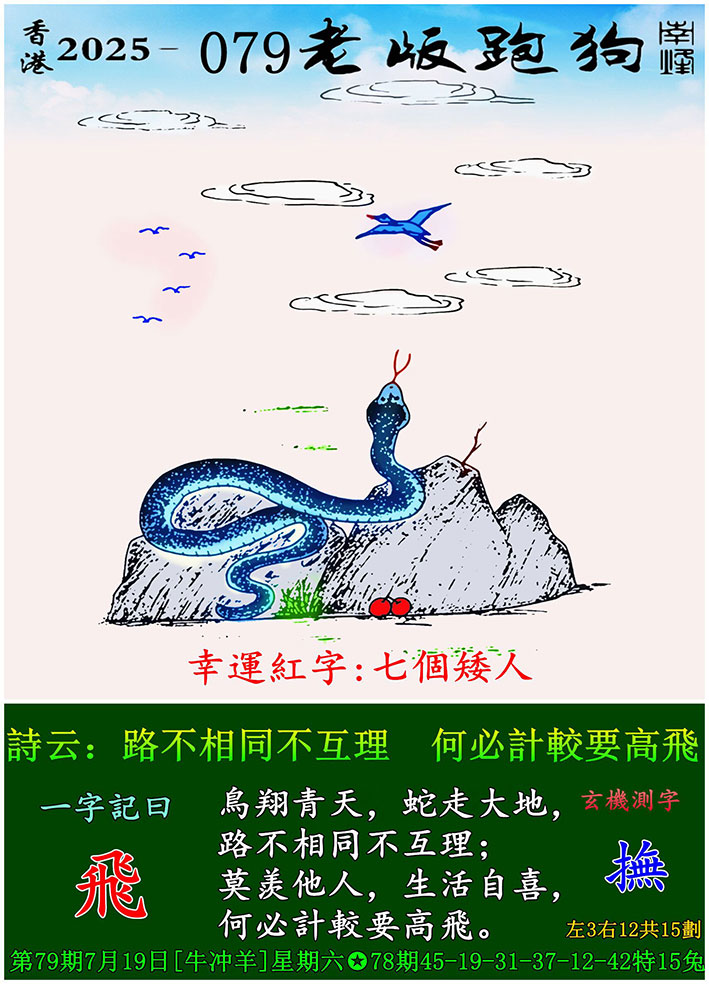 079期老版跑狗一字記之曰:【飛】 玄機測字:《撫》