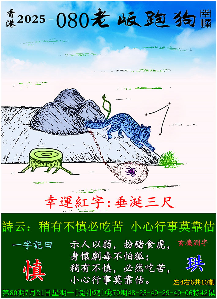 080期老版跑狗一字記之曰:【慎】 玄機測字:《珙》