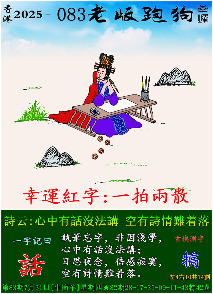 主题 : 083期老版跑狗一字記之曰:【話】 玄機測字:《犒》