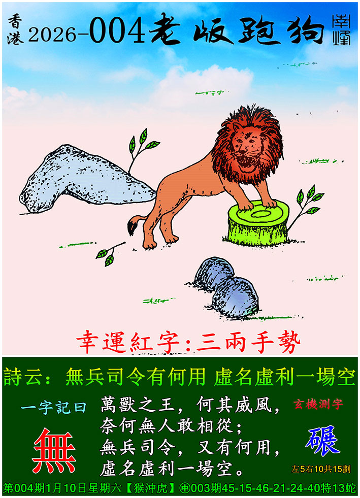 主题 : 004期老版跑狗一字記之曰:【無】 玄機測字:《碾》