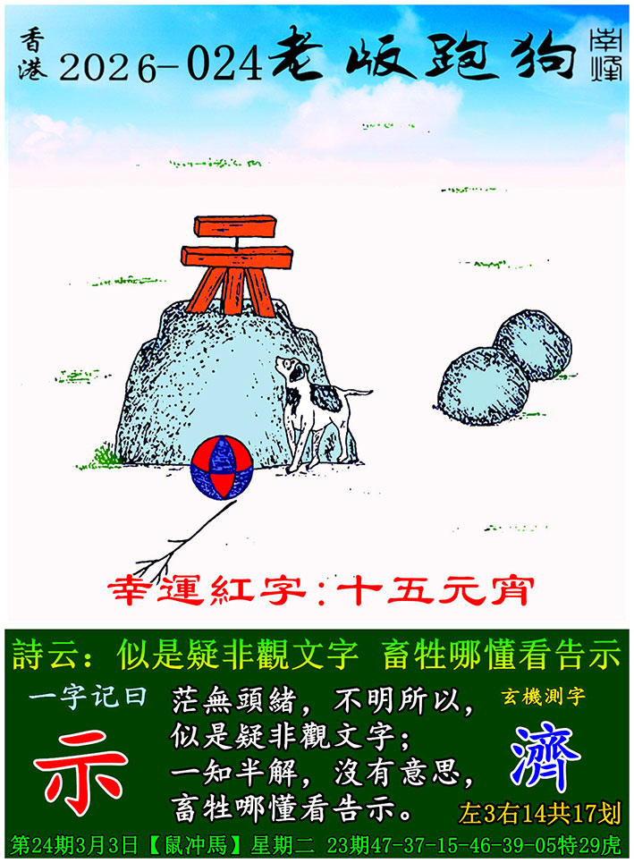 024期老版跑狗一字記之曰:【示】